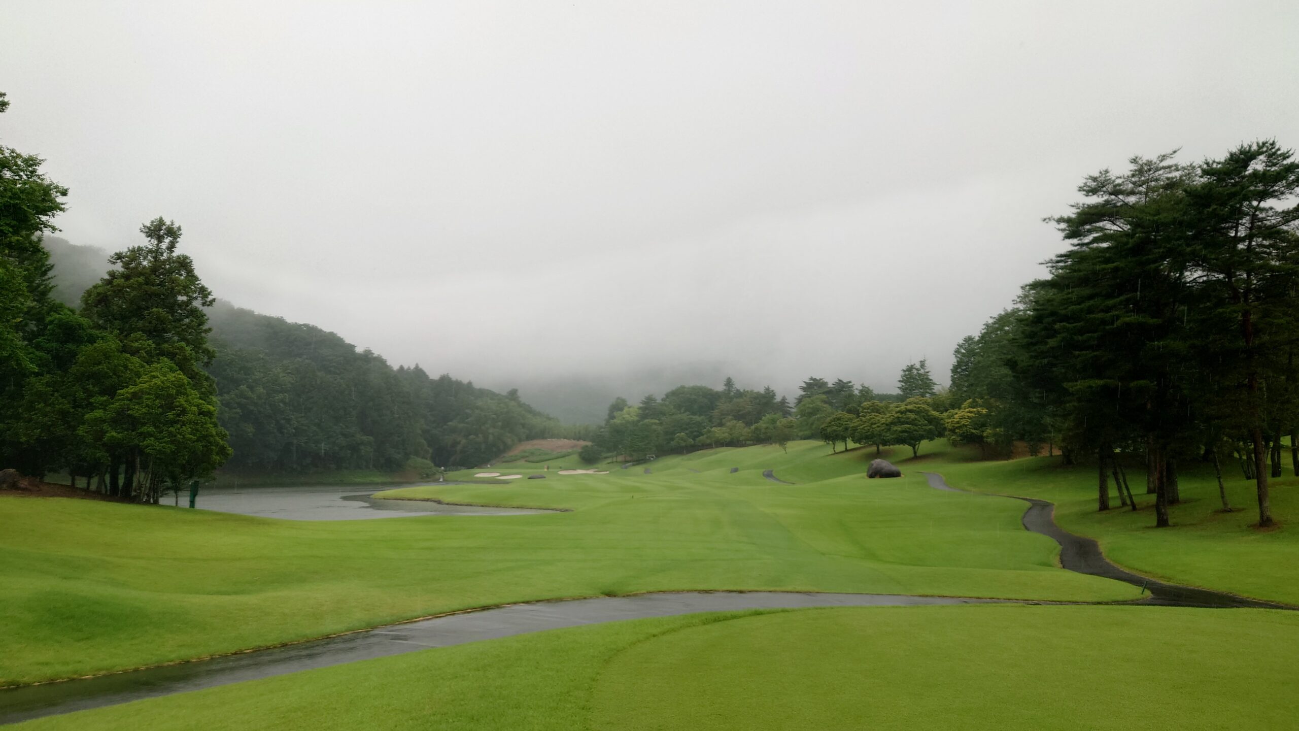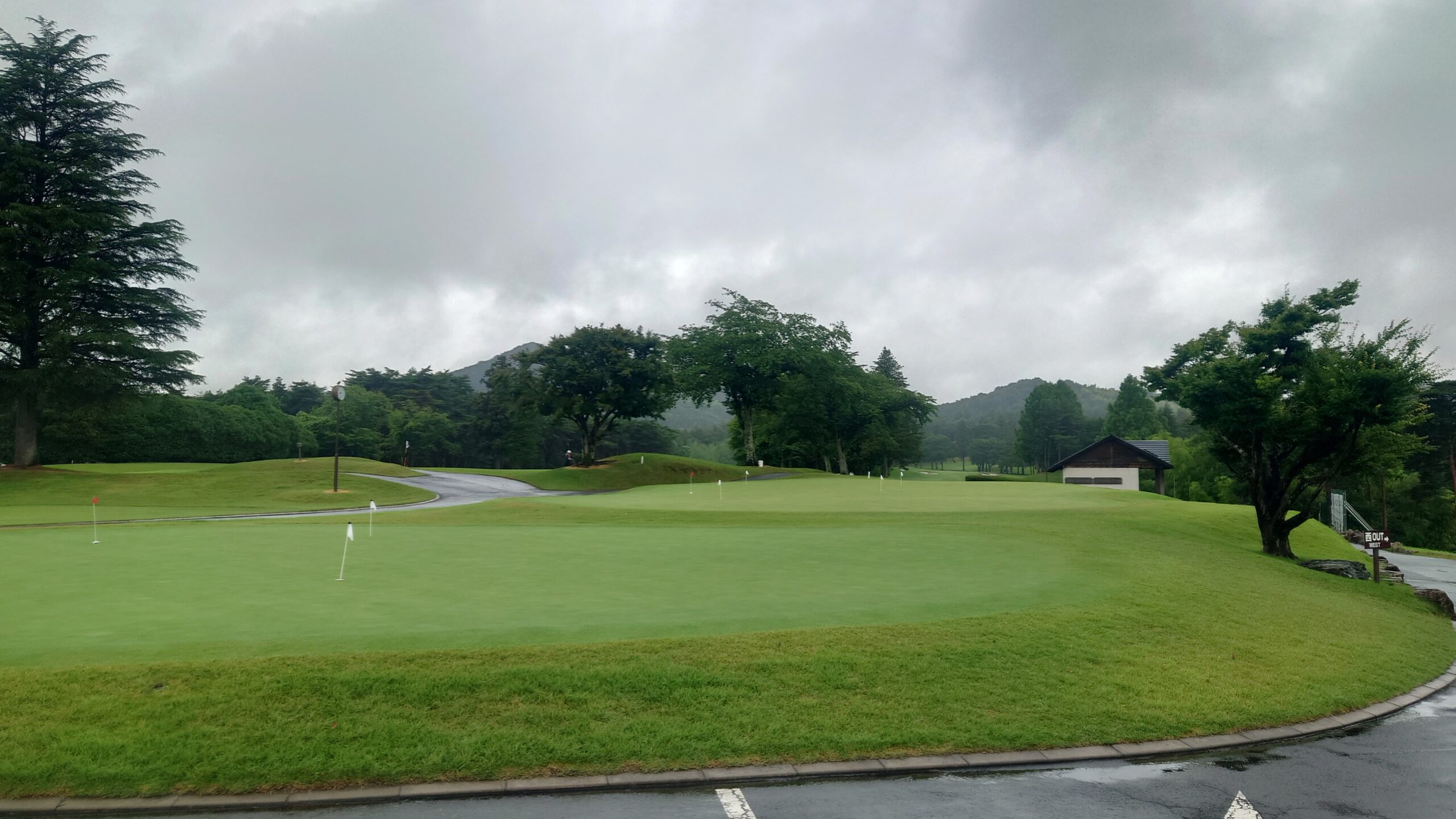 1974年10月に開場した東西36ホールの林間コース。西コースは2003年から男子ツアーのメジャートーナメントである日本ゴルフツアー選手権を連続して開催しており、本年22回目は6月8日に蟬川泰果選手の優勝で幕を閉じたばかりです。250ヤードのドライビングレンジ(第1練習場)内にカフェ・ベーカリー・クラブ工房を完備したヒルズテラスをオープンし、更に第2練習場を設け、檜をふんだんに取り入れたShishido SPAを新設する等、コース・施設の改修に力を入れ、会員満足度の高いクラブです。前日からの雨にもかかわらずグリーンもまったく影響が無い状態でした。コースの良さはもちろん、スタッフ等の対応も大変すばらしいゴルフ場です。ご入会を検討される方は当組合員へご相談ください。